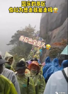 看著這前不見頭后不見尾的長長隊伍。有人直喊“我后悔了,我不想出來玩了,我想回家!”讓人苦笑不得。網友:國慶的景區你以為想走就能走嗎?