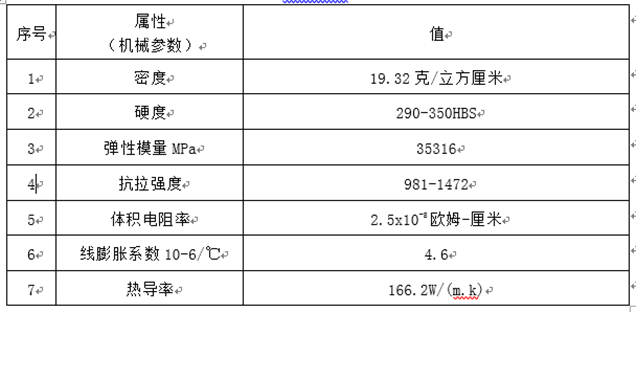 碳化鎢的硬度大概是鋼的兩倍,密度比鋼或者鈦的密度大很多。具體物理參數(shù)參見下表: